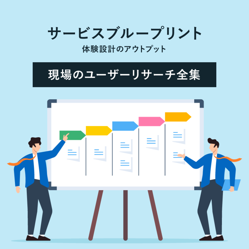 サービスブループリントとは、ユーザー視点の利用体験(フロントステージ)と事業者視点の提供体制(バックステージ)をフローチャートで可視化して、プロダクト運営に関連する組織活動を俯瞰的に見るアウトプットです。