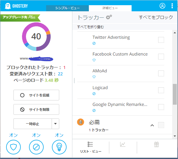 調べ方はとても簡単でWebブラウザに「Ghostery」という拡張機能をインストールして、対象サイトを開くだけでどのような広告のタグが設置されているか一覧で表示してくれます。