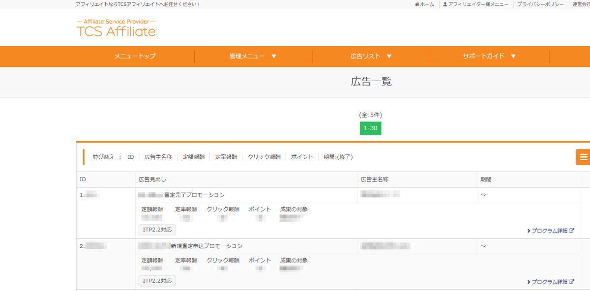 これらのASPの管理画面サイトにアクセスして例えば「中古車査定」で案件検索をするとアフィリエイト広告を実施している広告主がヒットします。案件詳細ではバナー素材や成果地点、成果報酬金額まで見ることが可能です。